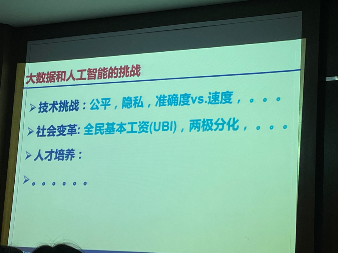 Next, the professor made a summary, the world is in a hundred years of unprecedented changes, the competition of big countries is essentially the competition of technology, artificial intelligence is one of the most core technologies, it is still in the primary stage, talent training is the most important task at present, the future is data plus algorithm plus application.