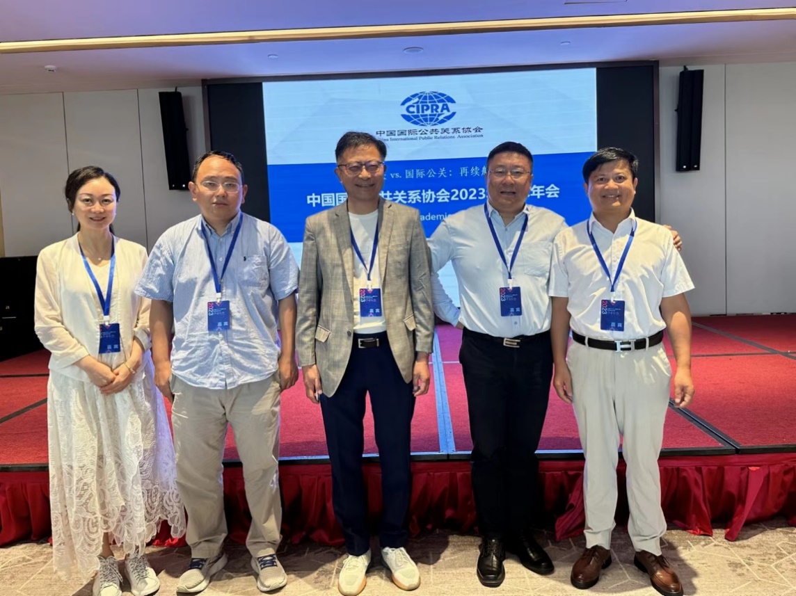 Recently, the 2023 Academic Annual Meeting of the China Association for International Public Relations was held in Ji'an City, Jiangxi Province. Pan Yu, Dean of SBM, Yang Chen, Director of the Department of Public Relations, and Jiao Mei, Faculty of the Department of Public Relations, attended the meeting.