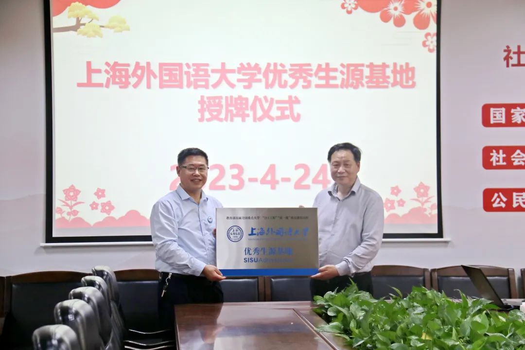 Xu Yong led the Admissions Group members to Shantou Chaoyang Experimental School. Principal Zhang Shiping warmly welcomed our school's visit. Xu Yong expressed his gratitude to Chaoyang Experimental High School for providing stable and high-quality students to Shanghai Foreign Studies in recent years, and briefly introduced the advantageous disciplines of SISU and the development of graduates from Wanzhou Senior High School. Finally, both sides awarded the "Excellent Student Source Base" and reached a consensus on future cooperation between the two schools.
