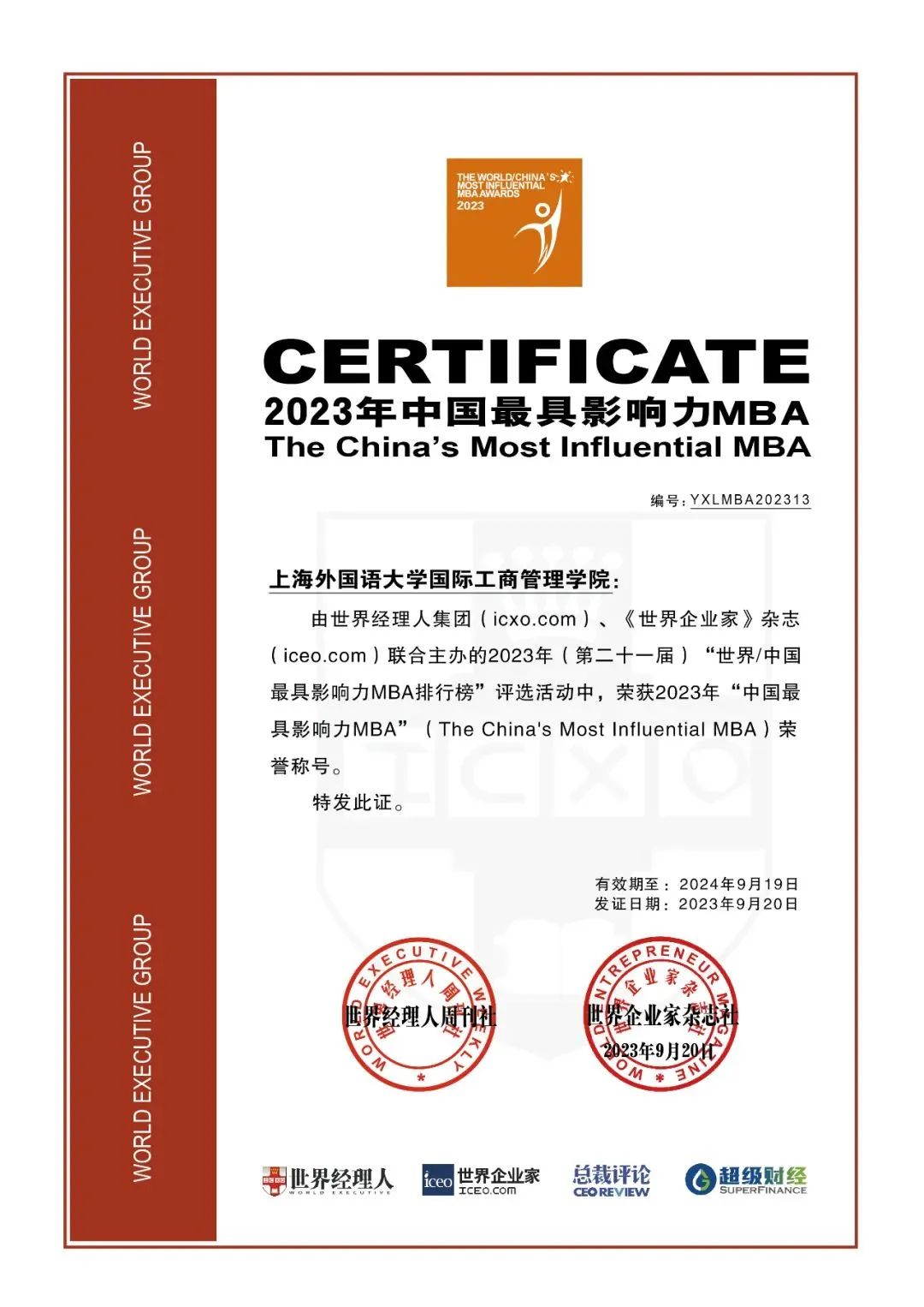 Among them, the satisfaction of enterprises with MBA talents and the satisfaction of students with MBA educational institutions occupy a significant weight in the evaluation indicators. The MBA program of SBM at SISU has stood out from multiple universities after comprehensive investigation and has been awarded the title of "China's Most Influential MBA".