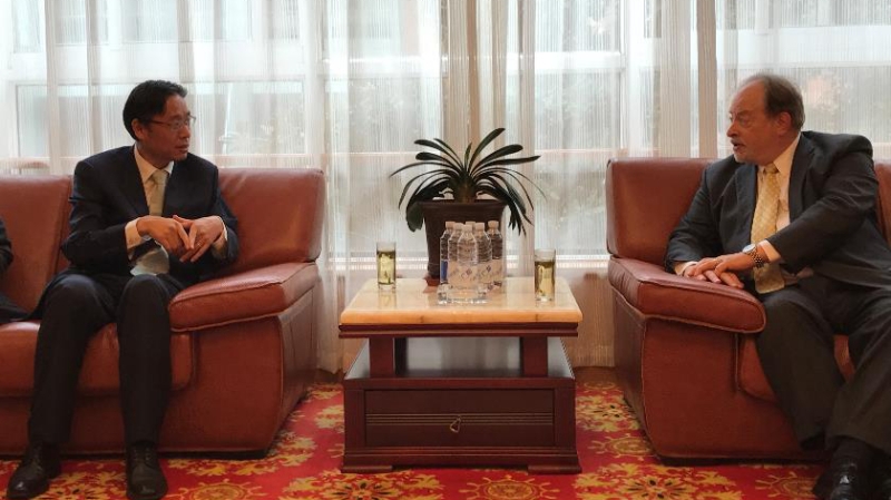 President Cao introduced to the guests the history of SISU and its vision of nurturing outstanding and internationalized “multilingual” talents and the orientation of building a distinctive and world first class foreign studies university. He also expressed his appreciation for the effective cooperation between each other and his satisfaction with the progress made in aspects of constructing Confucius Institute for Business at Baruch College, developing Joint instruction and research programs since the signing of MOU by the two schools. He pointed out that the US and China are the two of the most important economies in the world, and that the cooperation between the two universities would strengthen mutual learning, communication and understanding between the youth of the two countries, for which SISU will provide forceful support.