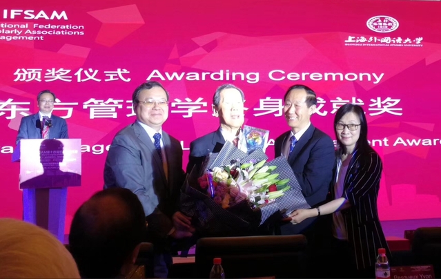 IFSAM awarded professor Su Dongshui “Oriental Management Lifetime Achievement Award”. Chairman Wang jiarui presented the prize to Prof. Su, Chen Jing, secretary-general of Shanghai Municipal People's Congress (NPC) and Chen Chunhua,dean of BiMBA business school of Beijing University presented bouquets.For half a century, Prof. Sue has been preserving his study and founded a school Oriental Management, with “people-oriented, morality-oriented and human good” as the ideology. There was also an inaugural ceremony of “Alliance of Oriental Management Institutes”. At present, research centers have been established in 11 universities.