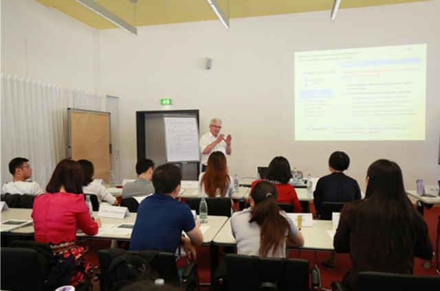 This study tour centered around the topic of Industry 4.0. Through interaction and discussion, attending lectures and visiting enterprises, the 25 students experienced an excellent borderless communication. HHL has thoughtfully organized multiple subjects and activities for the students, including lectures given by learned professors, which covered a wide range of topics like Germany economic system, management and innovation on supply chain in industry 4.0 era, scenario strategy planning, etc. The professors encourage students to speak out in the class so that they can learn something new by sharing their thoughts with classmates and teachers. These classes extended international awareness for the participants. Gaining the first-hand management concept, especially Germanic Industry 4.0 concept, highly revitalized their mentality.