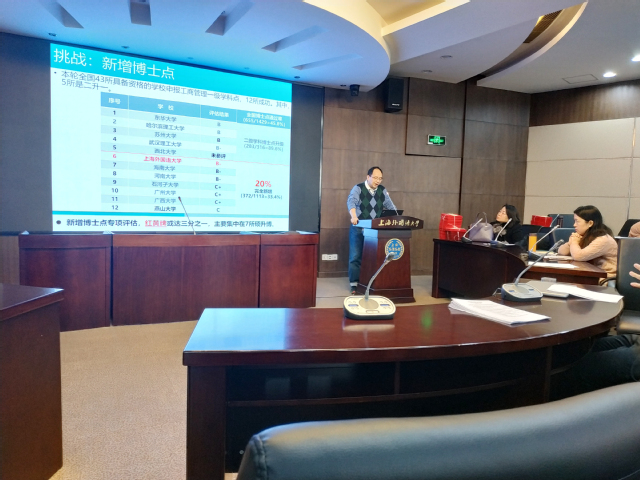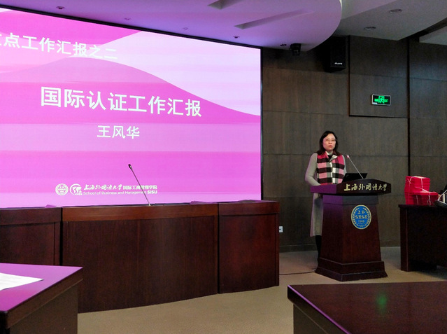Vice Dean Wang Fenghua gave a report on the international accreditation efforts, summarizing the achievements of SBM in enhancing the influence of internationalization in the past year, and emphasized the importance and urgency of passing AMBA and EQUIS in the next one or two years. Wang then elaborated on the long-term plan of SBM to pass the AACSB accreditation within five years, and called on all the teachers to get involved actively and to contribute to the internationalization of SBM.