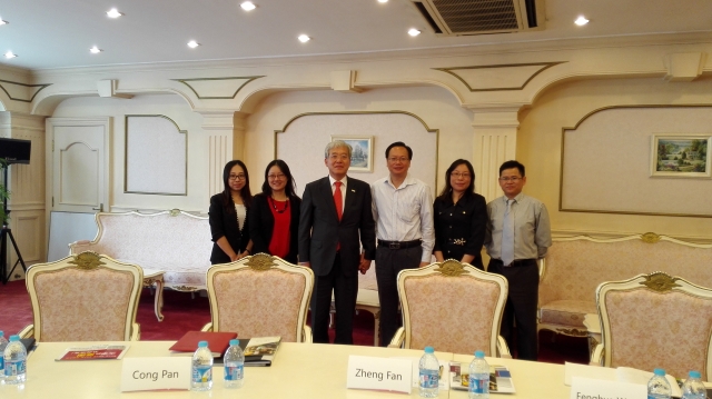 On the afternoon of Oct. 8, 2014, Jin Sung Kim, Dean of SolBridge International Business College, Woosong University, Korea, visited SISU and SBM to discussion comprehensive cooperation issues. SBM Dean Fan Zheng and Vice Dean Prof. Wang Fenghua and Ms. Pan Cong received the guests.